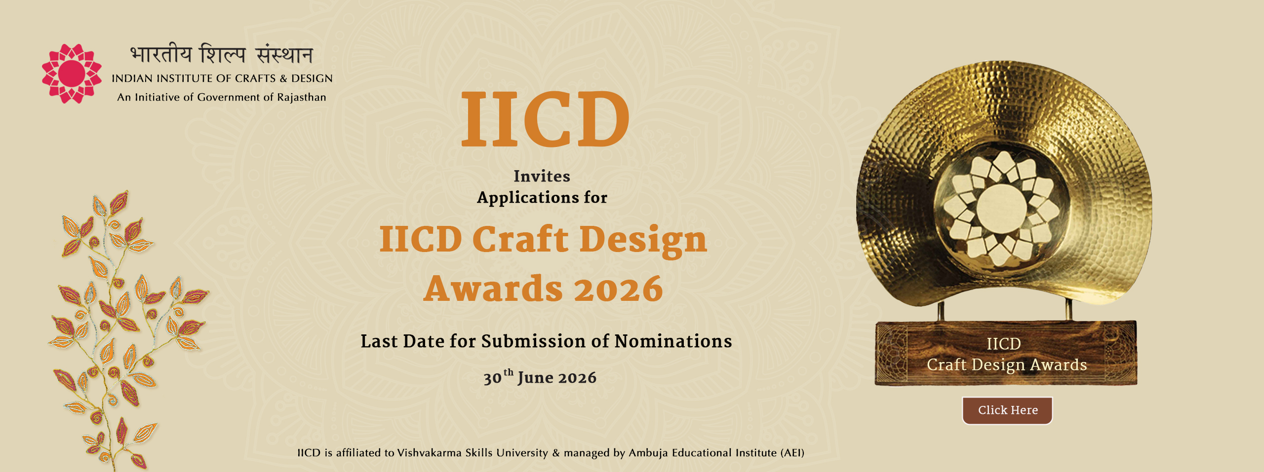 IICD offers Under Graduate and Post Graduate degree programmes in Crafts & Design under the aegis of the Vishvakarma Skills University, Jaipur (VSURAJ).